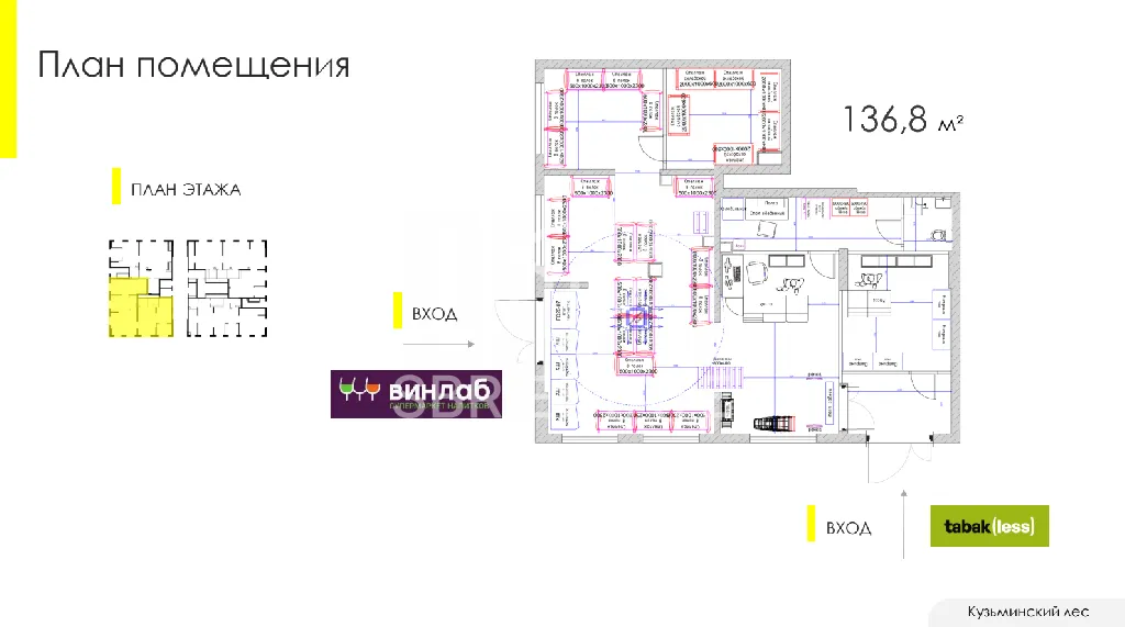 Арендаторы: магазин ВинЛаб, Tabak(less), общая месячная арендная плата 352 000 рублей.