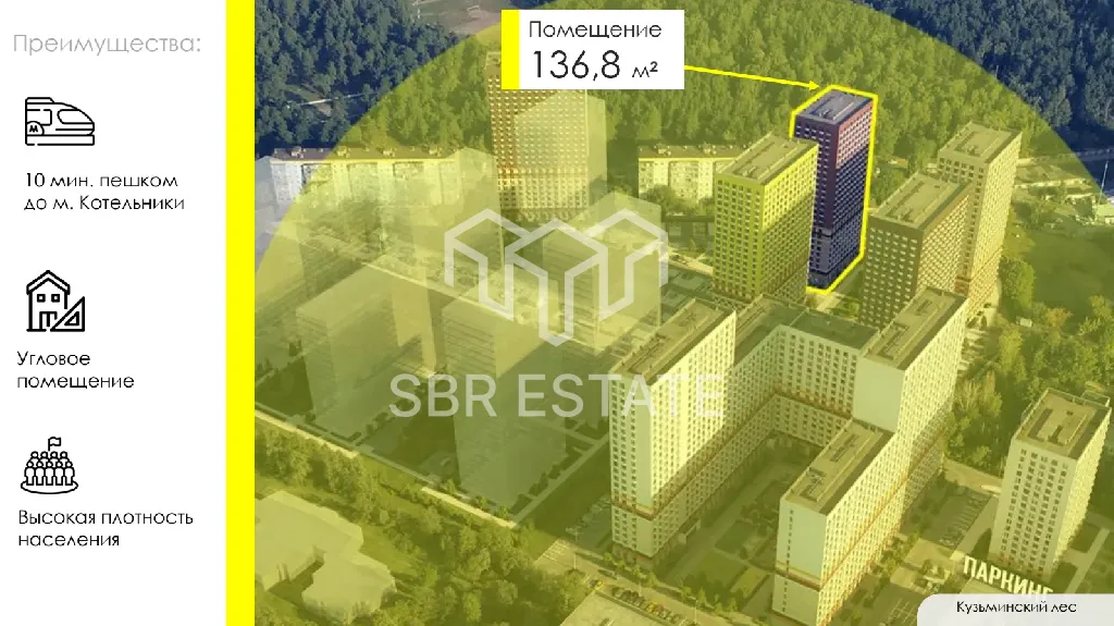 Продажа торгового помещения 136.8 м2 с арендаторами магазин ВинЛаб, Tabak Less по адресу: Московская Область, г. Котельники, ЖК «Кузьминский лес», к.10 (10 минут пешком от метро Котельники). 1 линия домов.