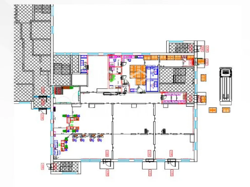 В помещении открытая планировка, отдельный вход с фасада, высота потолка 3.5 м, витринные окна по фасаду. Электрическая мощность 80 кВт.
