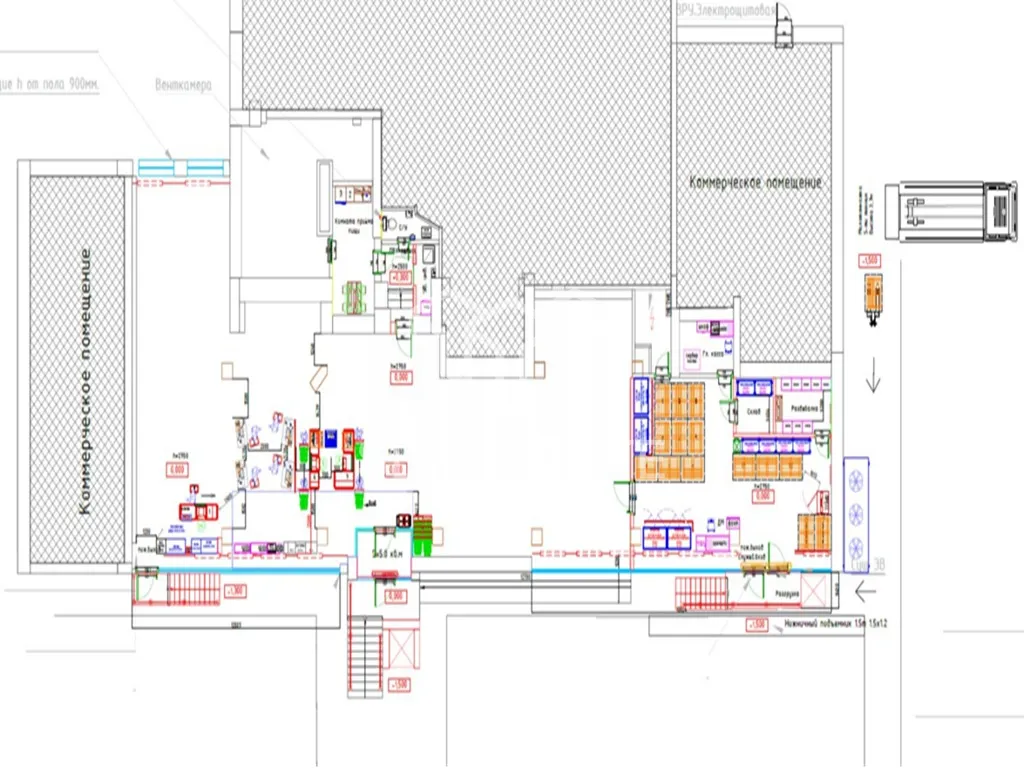 Помещение 639.7 м2, располагается на 1 этаже, открытая планировка, отдельный вход с фасада, высота потолка 3 м, витринные окна по фасаду. Электрическая мощность 180 кВт. Парковка перед фасадом. Место для размещения рекламы.