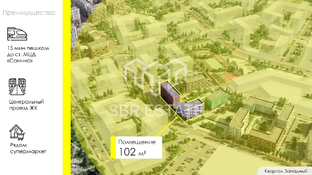 Продажа торгового помещения 102 м2 с арендаторами аптека Ригла, Озон по адресу: Новая Москва, ЖК "Квартал Западный" к. 3 (15 минут пешком от метро Санино). 1-я линия домов.