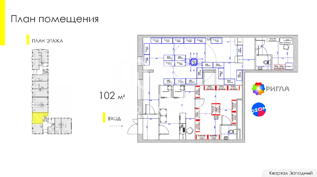 Помещение 102 м2, располагается на 1 этаже, открытая планировка, отдельный вход с фасада, высота потолка 3 м, витринные окна по фасаду. Электрическая мощность 18,4 кВт. Парковка перед фасадом. Место для размещения рекламы. Ввод – 4 кв. 2025 г.