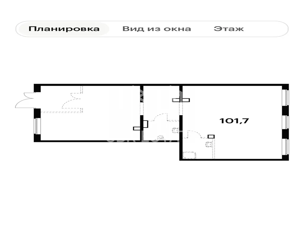 Помещение 101.7 м2 располагается на 1 этаже, открытая планировка, отдельный вход с фасада, витринные окна смотрят на две стороны, высота потолка 4.5 м, Электрическая мощность. 20 кВт. Парковка перед фасадом. Место для размещения рекламы на фасаде.