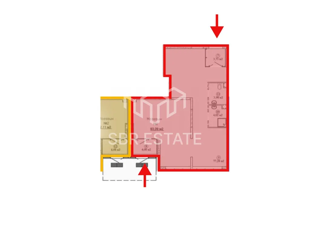 Помещение 93 м2, располагается на 1 этаже, открытая планировка, отдельный вход с фасада, высота потолка 3,5 м, витринные окна по фасаду. Электрическая мощность 18 кВт. Парковка перед фасадом. Место для размещения рекламы. Сдан в 2023 году.