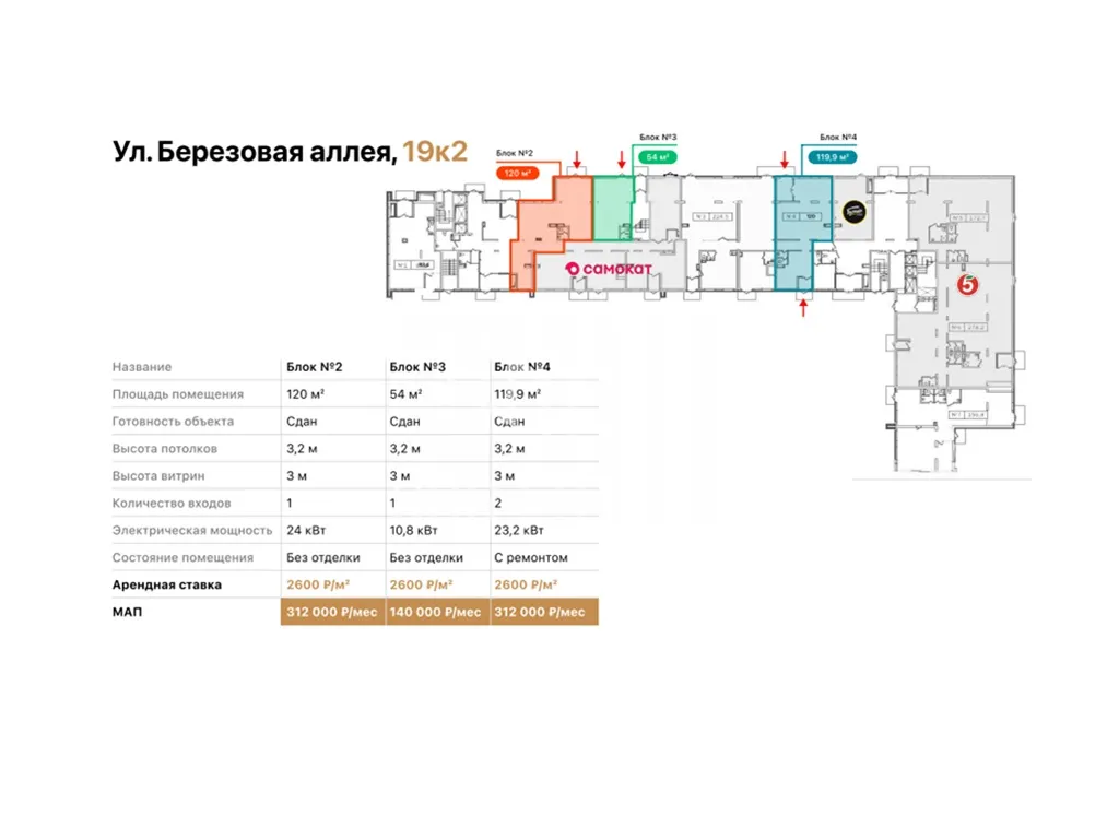 Аренда торгового помещения 120 м2 на ул. Березовая аллея, д. 19 к2 (13 минут пешком от метро Ботанический сад). 1-я линия домов.