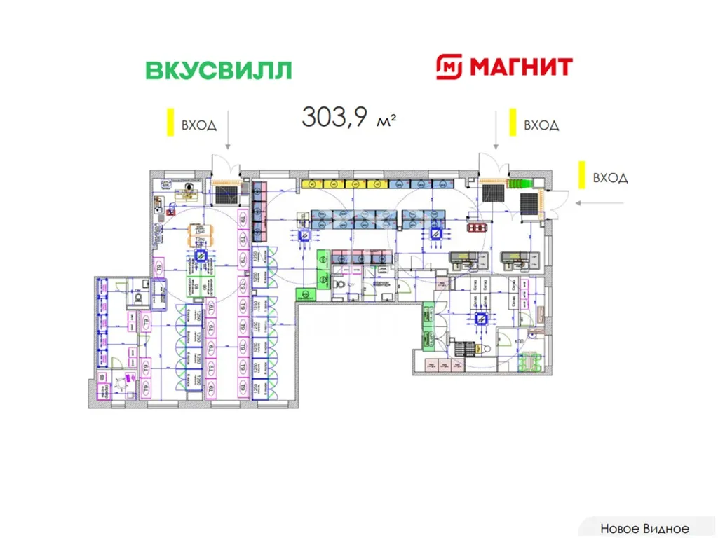Продажа коммерческого помещения 303,9 м2 с арендаторами магазин Магнит и Вкусвилл, по адресу: Московская область, Ленинский городской округ, ЖК Новое Видное, 15 (39 минут транспортом от метро Домодедовская). 1 линия домов.