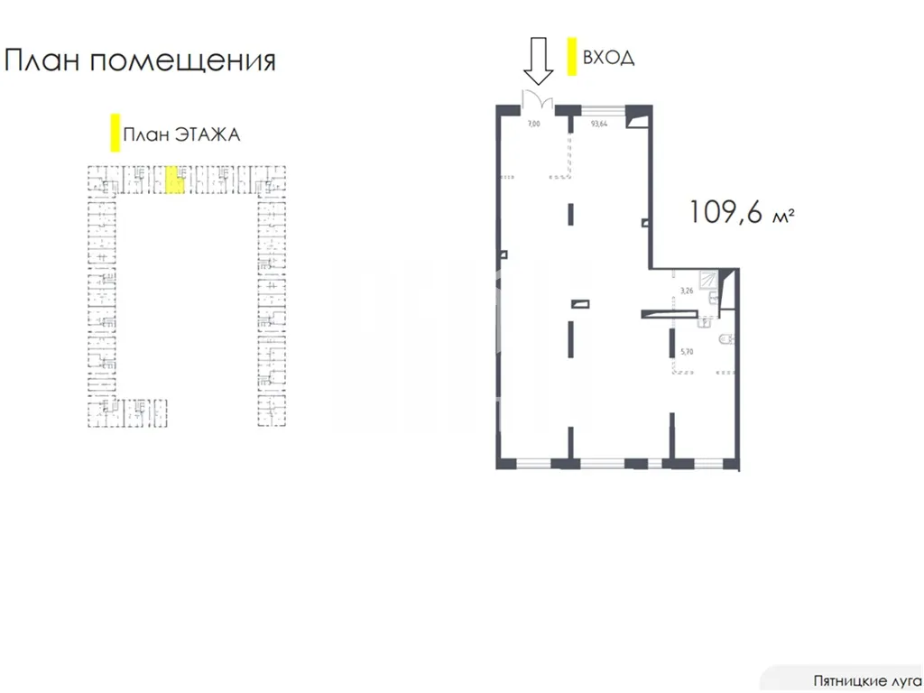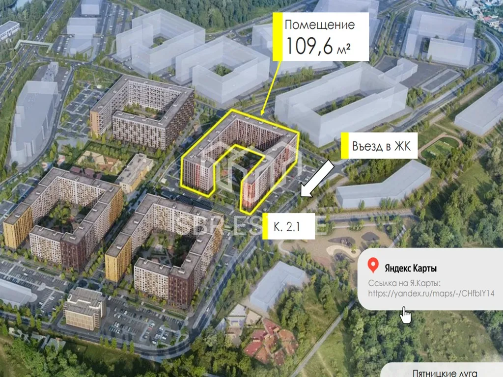 Продажа торгового помещения 109,6 м2 по адресу: Московская область, городской округ Химки, деревня Юрлово, жилой комплекс Пятницкие Луга, к2/1 (22 минуты транспортом от метро Пятницкое шоссе). 1 линия домов.