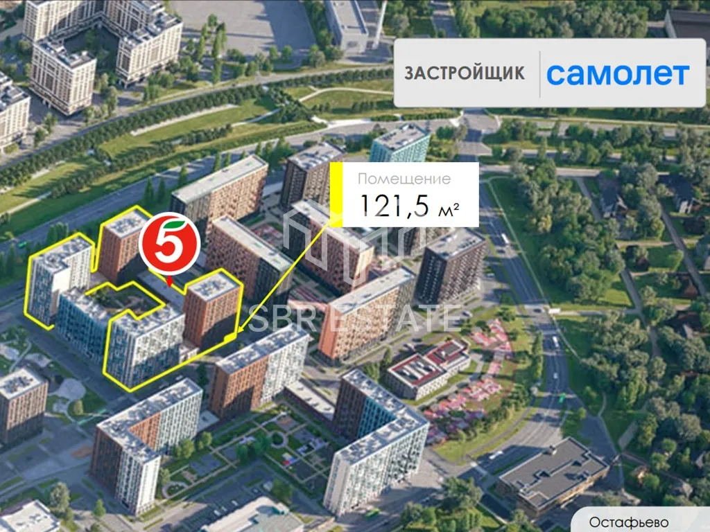 Продажа коммерческого помещения 121,5 м2 по адресу: Новая Москва, район Щербинка, ЖК Остафьево к. 17 (39 минут транспортом от метро Аннино). 1 линия домов.