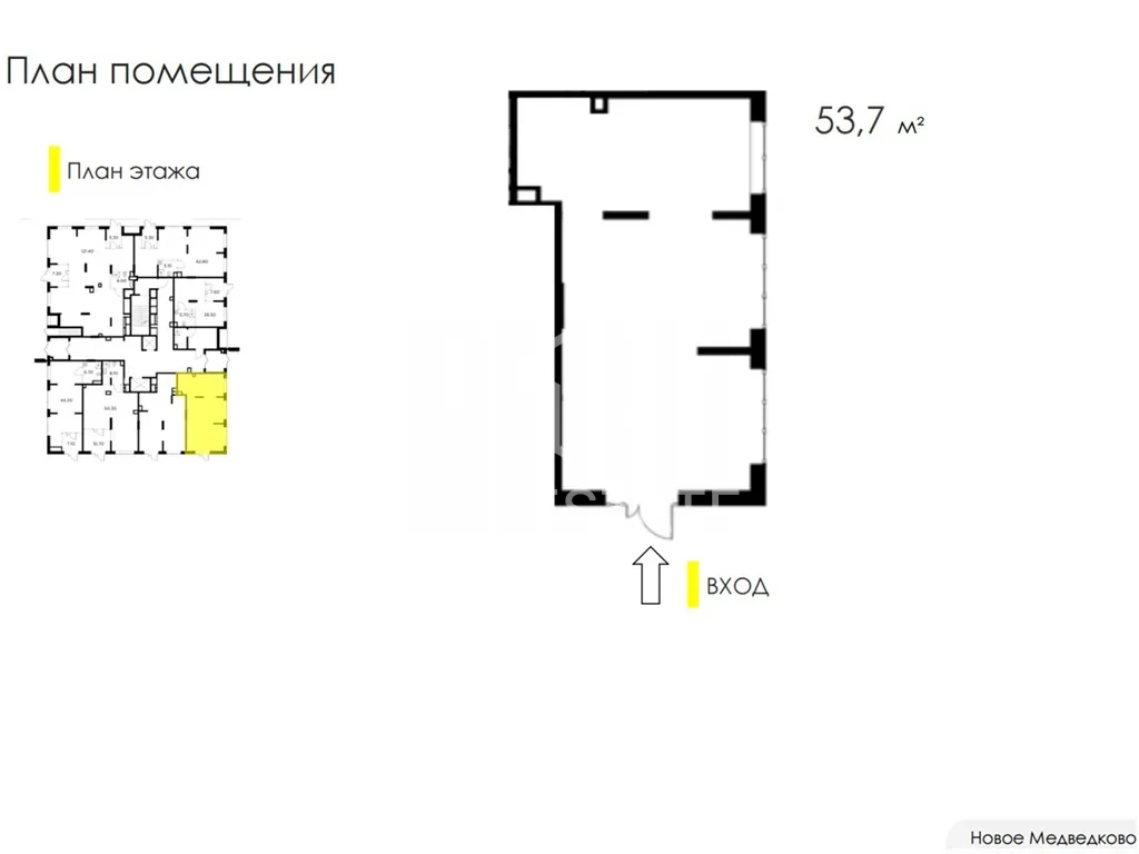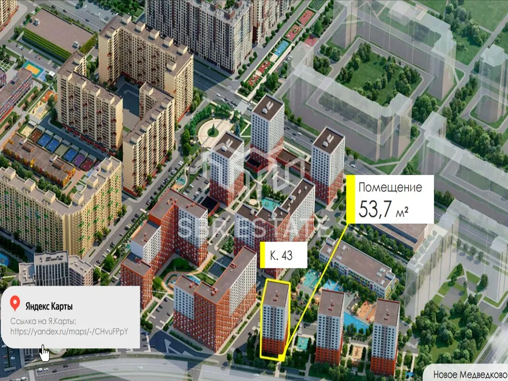 Продажа торгового помещения 53,7 м2 по адресу: Московская область, Мытищи, микрорайон 17А, ЖК Новое Медведково, к43 (19 минут транспортом от метро Медведково). 1 линия домов.