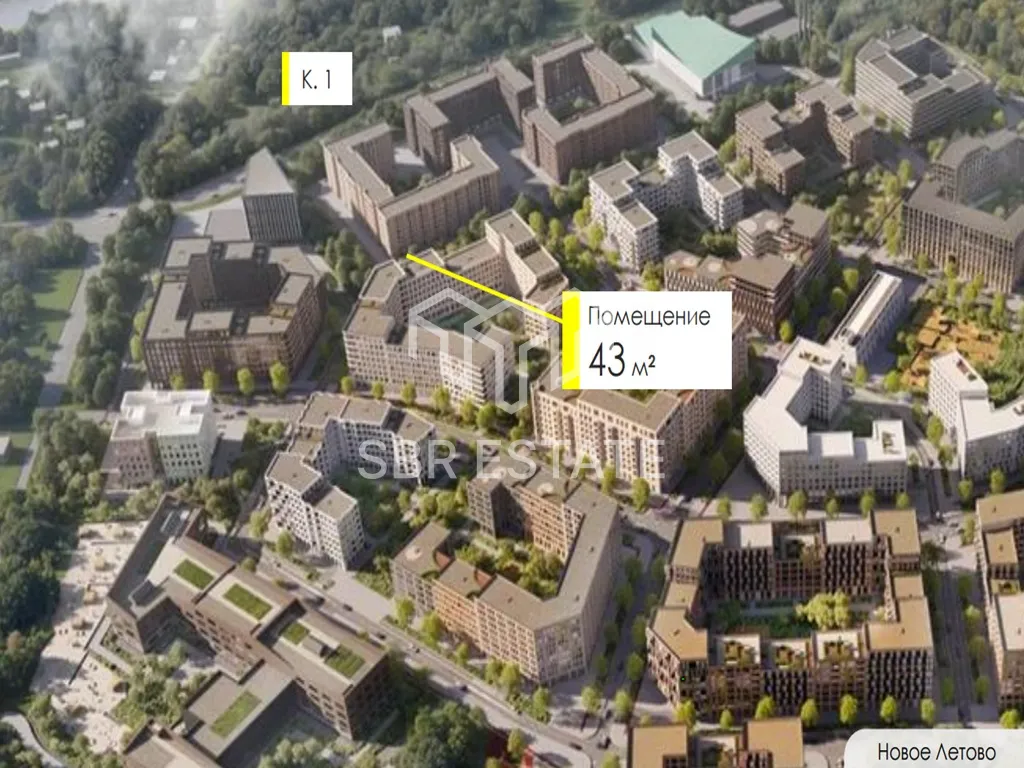 Продажа коммерческого помещения 43 м2 в Новой Москве, по адресу: Новая Москва, район Коммунарка, квартал № 82, Жилой Комплекс Новое Летово, к1 (9 минут транспортом от метро Прокшино). 1 линия домов.