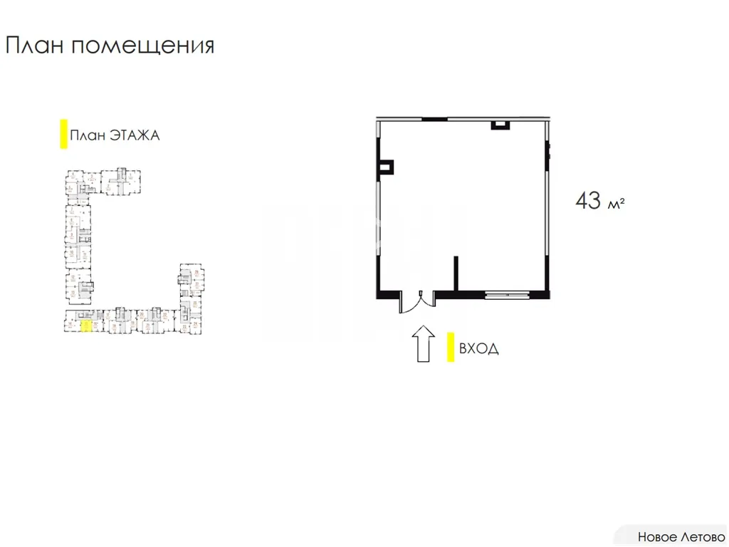 Помещение 43 м2, располагается на 1 этаже, открытая планировка, отдельный вход с фасада, высота потолка 4 м, витринные окна по фасаду. Электрическая мощность 8 кВт. Парковка перед фасадом. Место для размещения рекламы. Ввод в эксплуатацию 4 кв. 2025г.