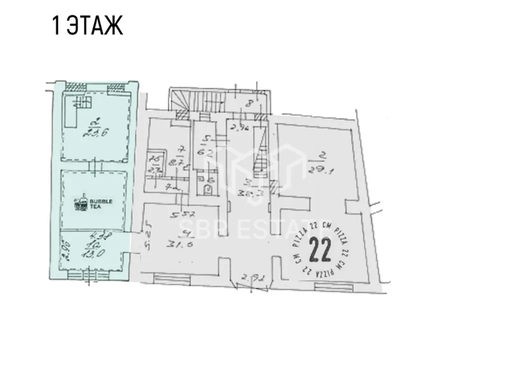 Помещение 111,2 м2 располагается на 1 этаже и в подвальном этаже, открытая планировка, отдельный вход с фасада, высота потолка 3 м, витринные окна по фасаду. Электрическая мощность 30 кВт. Парковка перед фасадом. Место для размещения рекламы на фасаде.