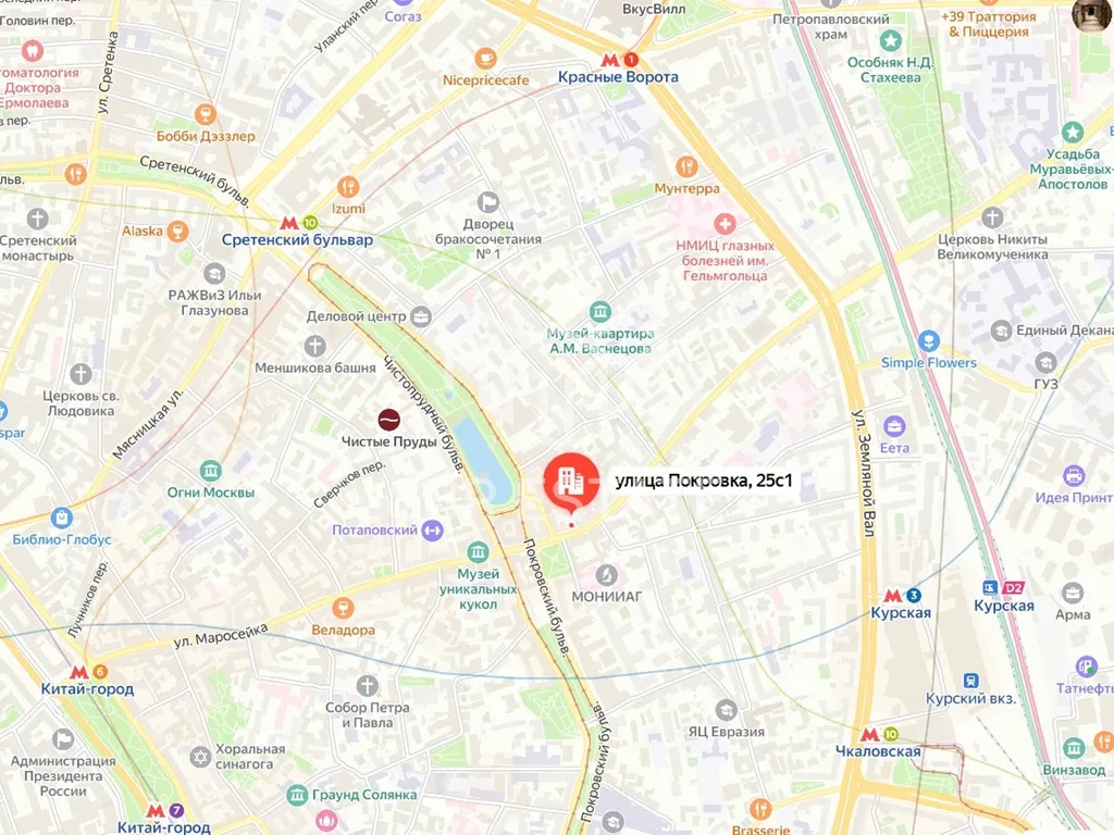 Аренда торгового помещения площадью 111,2 м2 на ул. Покровка, д. 25с1 (10 минут пешком от метро Чистые пруды). 1 линия домов.