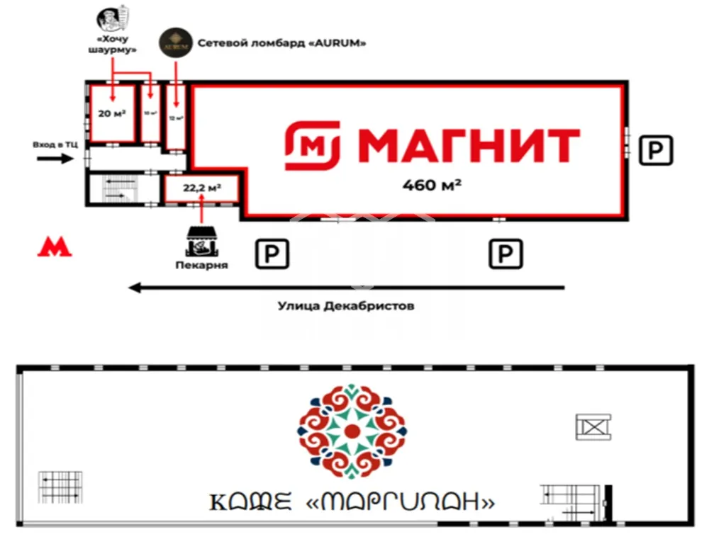 Арендатор: «Шаурма», месячная арендная плата 380 000 рублей. Договор аренды подписан с 2024 года по 2026 год. Ежегодная индексация 5%.