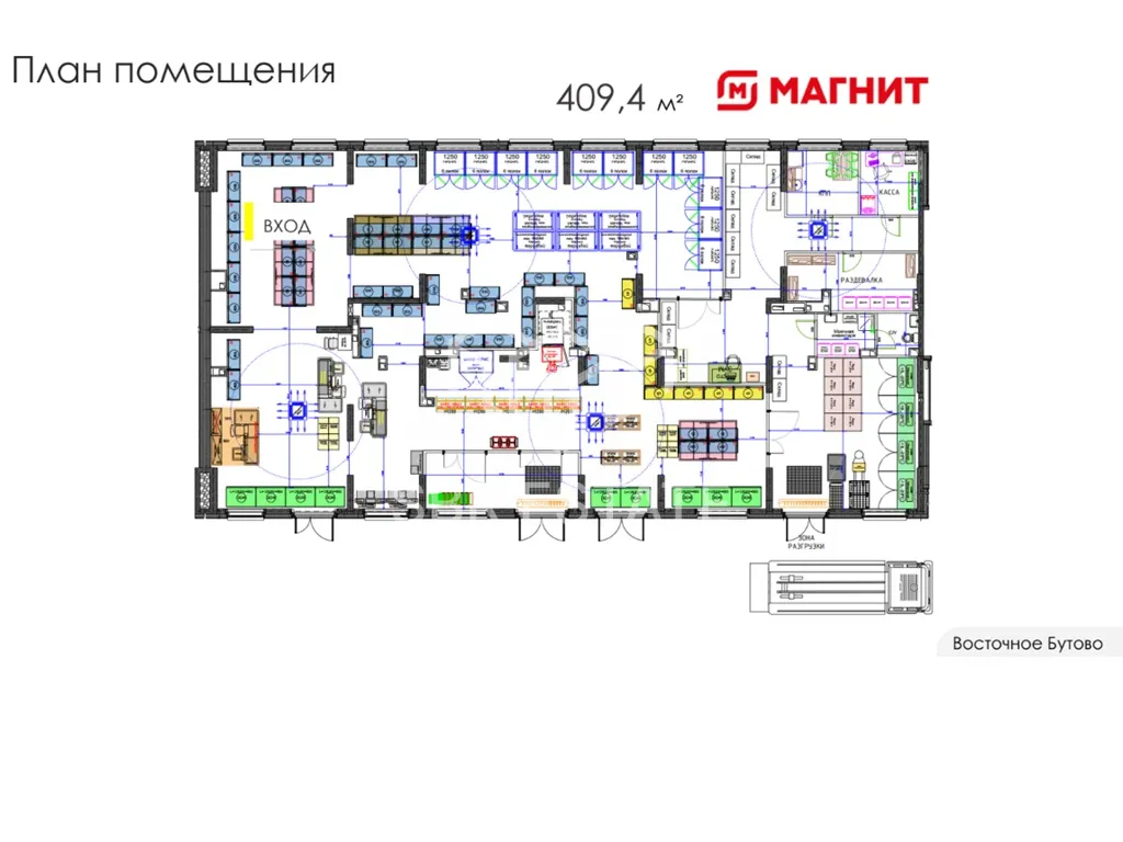 Продажа готового арендного бизнеса с арендатором Магнит, 409,4 м2, расположенного по адресу: Московская область, Ленинский городской округ, посёлок городского типа Боброво, жилой комплекс Восточное Бутово, 42 ( 24 минут на транспорте от метро Бульвар Дмитрия Донского).