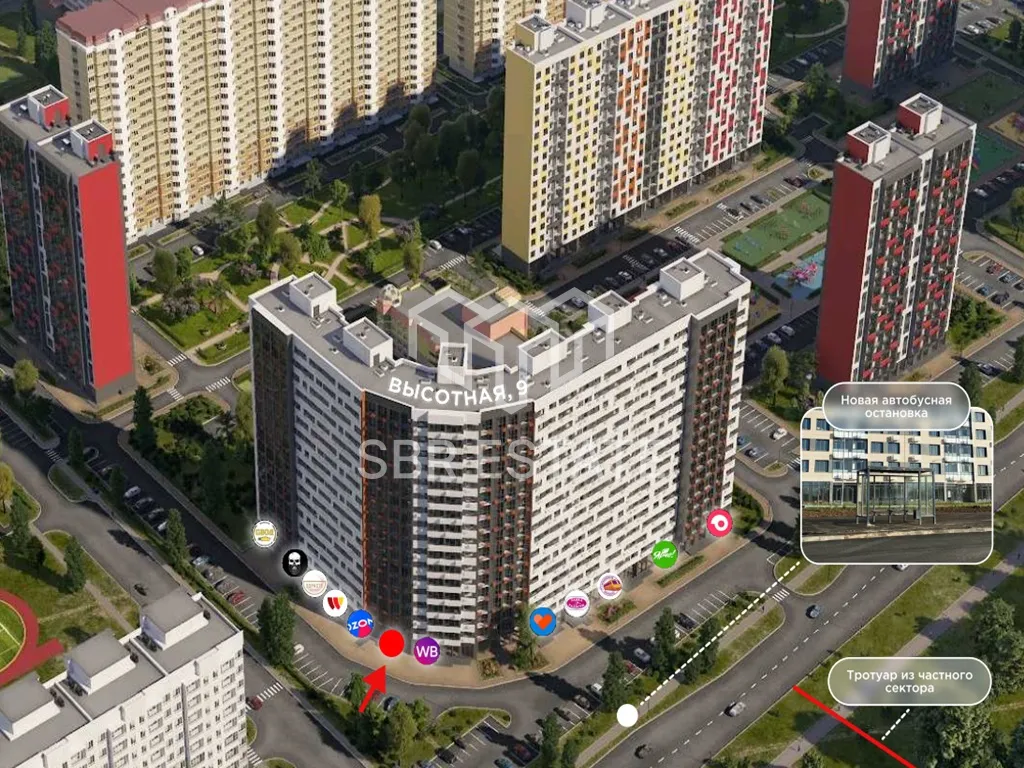 Помещение располагается на 1-м этаже жилого комплекса. Рядом с помещением остановка общественного транспорта. В помещении открытая планировка, отдельный вход с фасада, высота потолка 3,5 м, витринные окна по фасаду. Электрическая мощность 10 кВт. Парковка перед фасадом. Интенсивный автомобильный и пешеходный трафик вдоль помещения. Помещение располагается в окружении сетевых арендаторов. Есть место для размещения рекламы. Сдан в 2022 году.