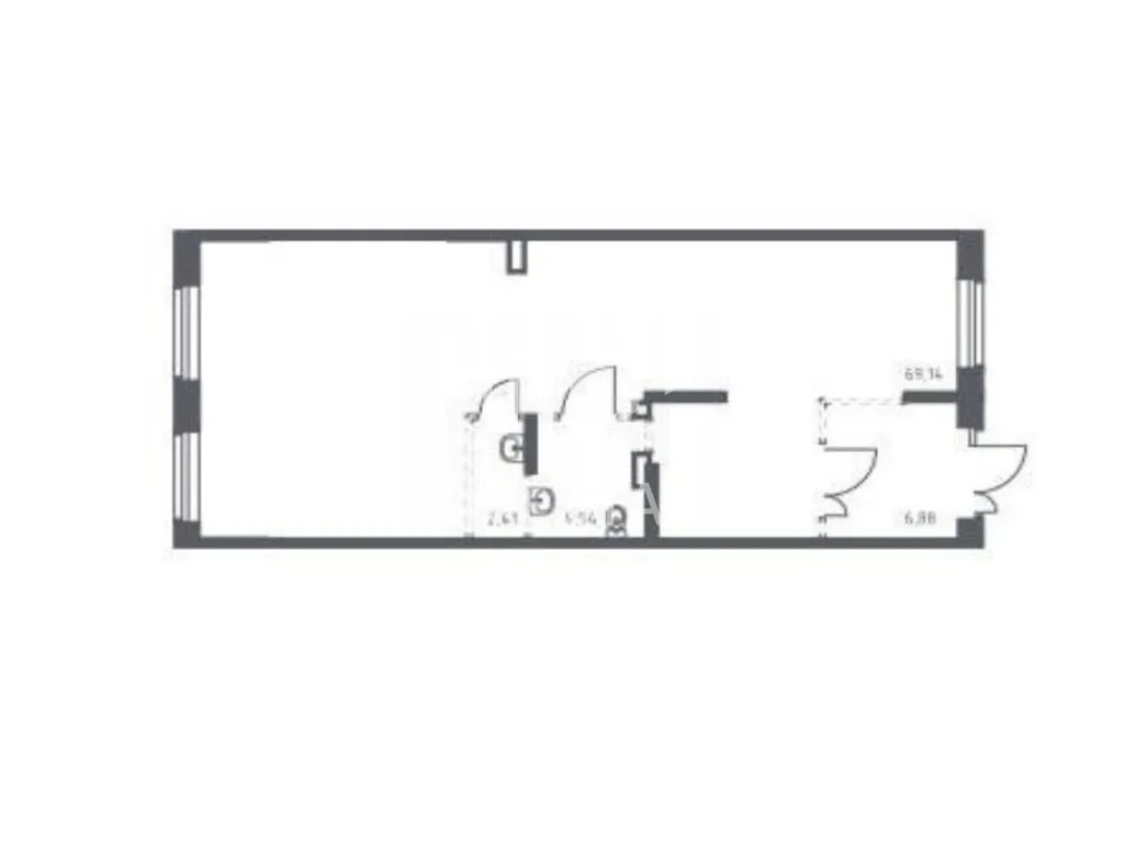 В помещении открытая планировка, отдельный вход с фасада, высота потолка 3,5 м, витринные окна по фасаду. Электрическая мощность 16 кВт.