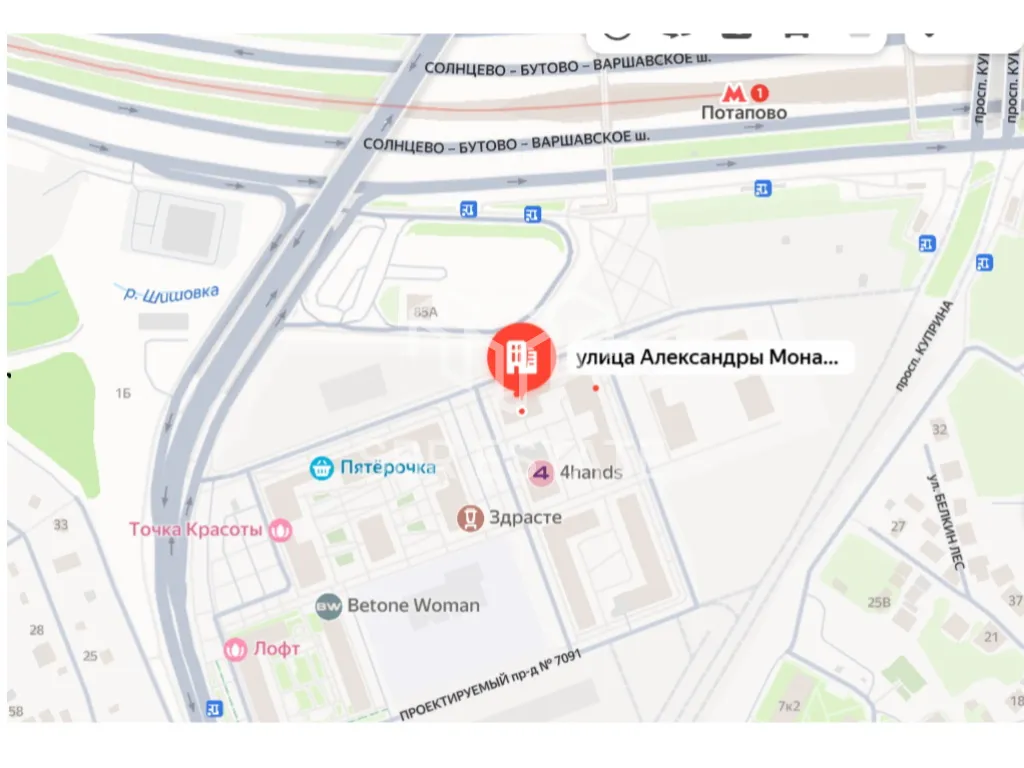Аренда торгового помещения площадью 95 м2 расположенного по адресу: Москва, Новомосковский административный округ, посёлок Коммунарка, улица Александры Монаховой, 85к1 (1 минут пешком минут на транспорте от метро Потапово).