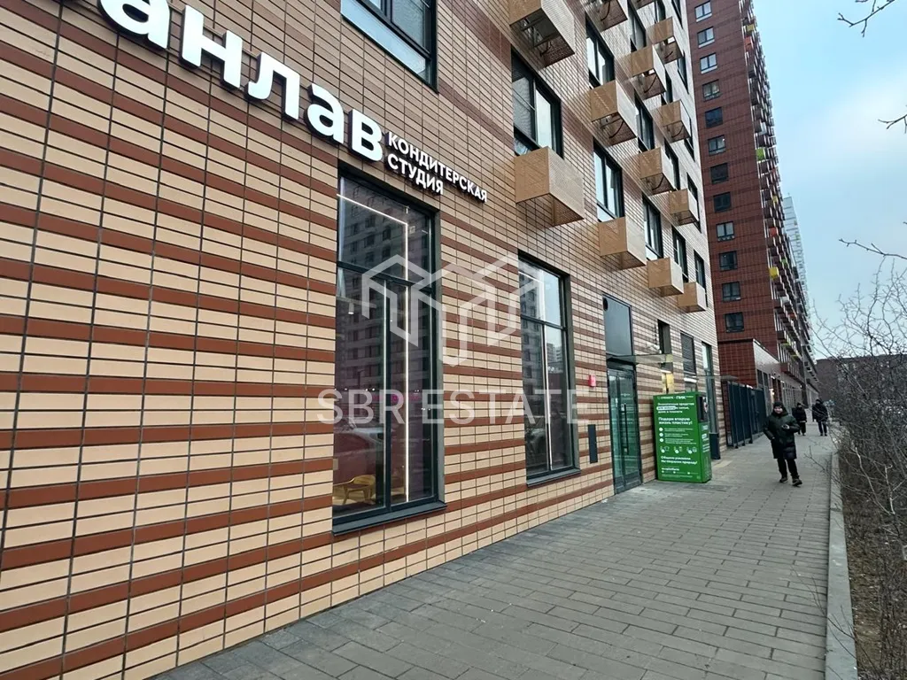 Помещение располагается на 1-м этаже первой линии жилого комплекса. Рядом с помещением остановка общественного транспорта. В помещении открытая планировка, отдельный вход с фасада, высота потолка 4.5 м, витринные окна по фасаду. Электрическая мощность 30 кВт. Парковка перед фасадом.