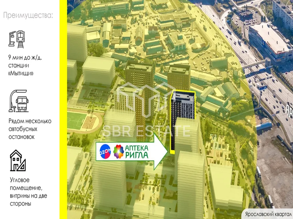 Продажа торгового помещения с арендатором «Ригла» площадью 125,8 м2 расположенного по адресу: Московская область, Мытищи, жилой комплекс Ярославский Квартал, к1.2 ( 19 минут на транспорте от метро Медведково).