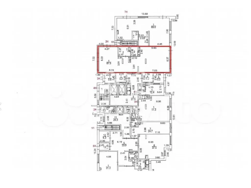 В помещении открытая планировка, отдельный вход с фасада, высота потолка 3.5 м, витринные окна по фасаду. Электрическая мощность 40 кВт.