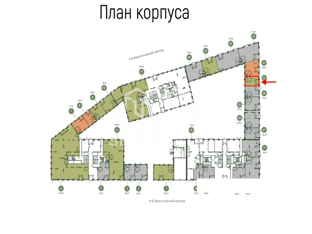 Помещение располагается на 1-м этаже первой линии жилого комплекса. В шаговой доступности от помещения, остановка общественного транспорта. Помещение находится в окружении сетевых арендаторов. Интенсивный автомобильный и пешеходный трафик вдоль помещения. Есть место для размещения рекламы. Парковка перед фасадом. Сдача 1 кв. 2027 года.