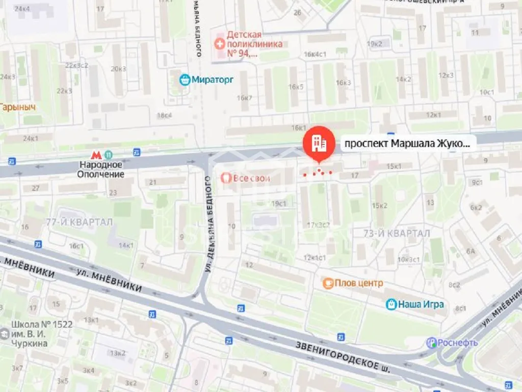 Объект расположен в густозаселенном районе с развитой инфраструктурой и в шаговой доступности от метро Народного Ополчения. Помещение встроенно-пристроенного типа на первой линии домов , вся площадь на 1 этаже, правильная прямоугольная форма, витринное остекление, реклама на фасаде, все центральные коммуникации, мощность 20 кВт, зона погрузки.